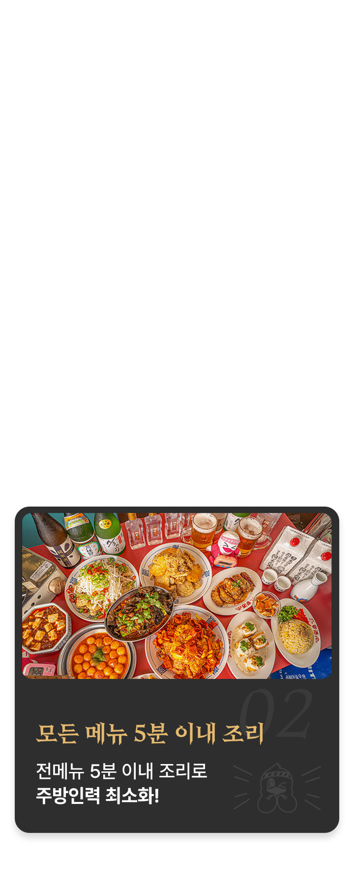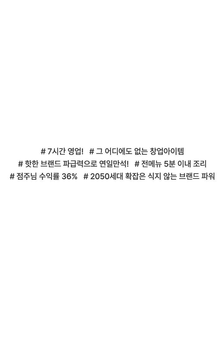 외식업이나 창업 경험 자체가 전무하셔도 걱정하실 필요 없습니다. 모든 메뉴가 5분만에 조리 가능할 정도로 운영은 어렵지 않습니다. 간절함과 성실함만 가져오시면 나머지는 저희가 채워드리겠습니다.