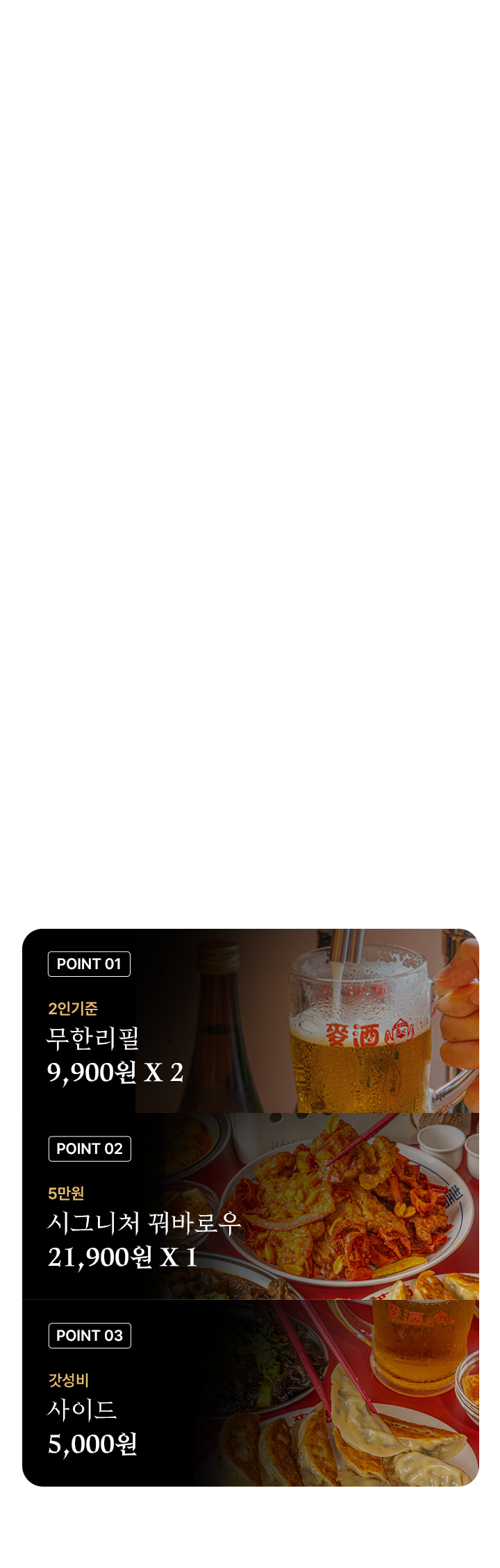 무한리필 개념이 아직 국내에 생소해서 오히려 많은 손님들이 호기심을 갖고 처음 방문하십니다. 그리고 만족해 하시면서 자연스럽게 높은 재방문율로 이어집니다. 식자재와 주류를 합한 원가율은 30% 정도고, 오히려 무한리필이 객단가를 높이는 요소로 작용합니다.
